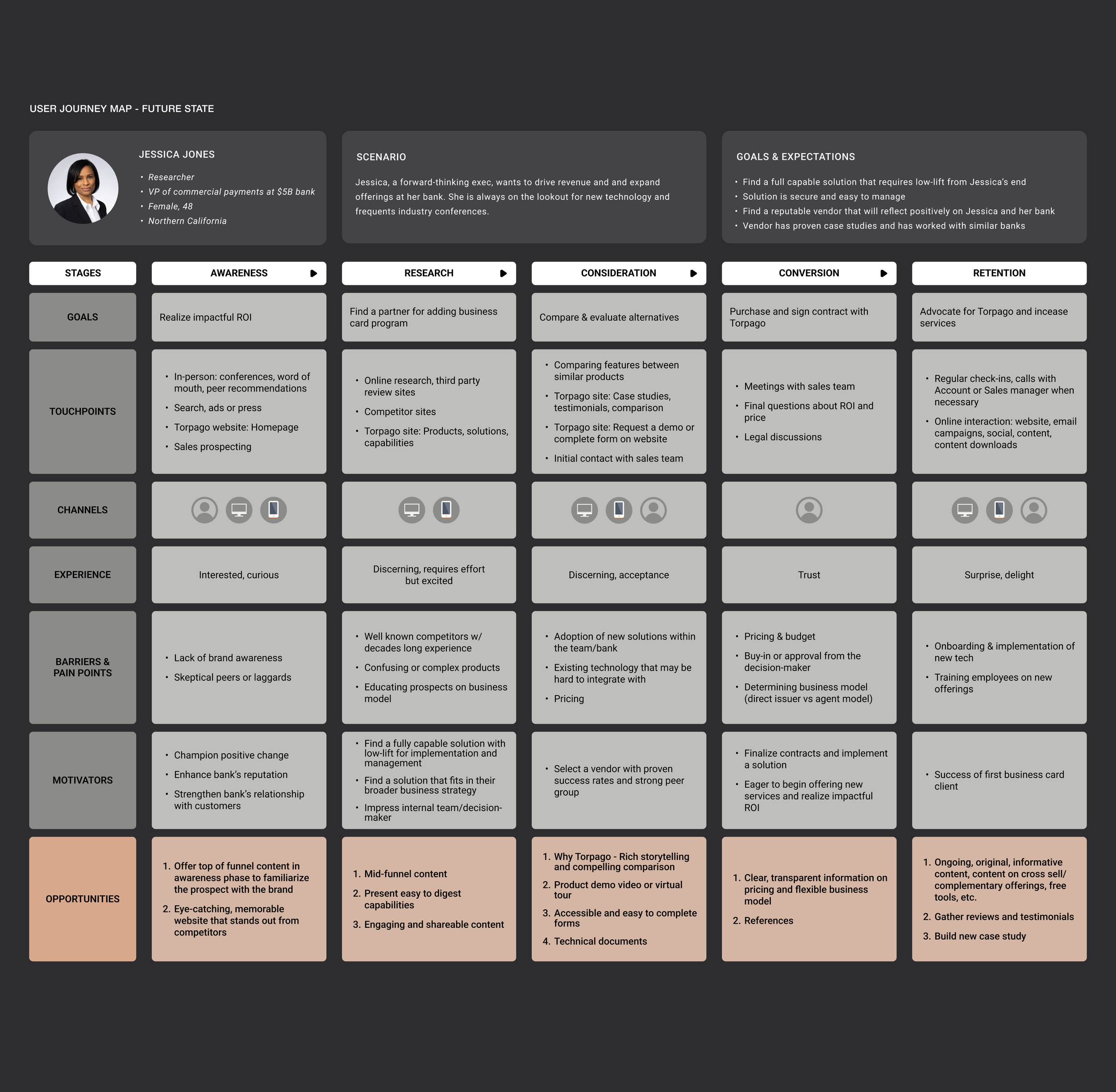 The redesigned website will help banking executives & decision-makers quickly find key information, understand Torpago’s value, and take action. By improving navigation, content structure, and CTAs, we expect: